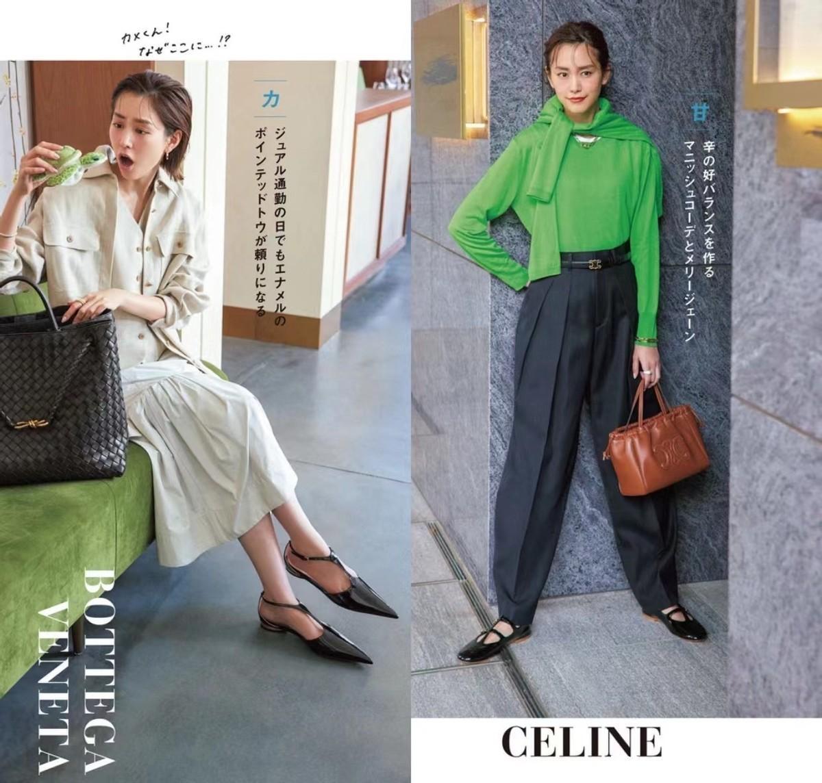关于平底鞋来说,公共在遴荐鞋头造型的工夫,不错多试试尖头鞋的造型。